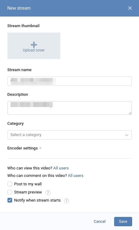 A form with the parameters of the broadcast will open. Fill in the required fields.